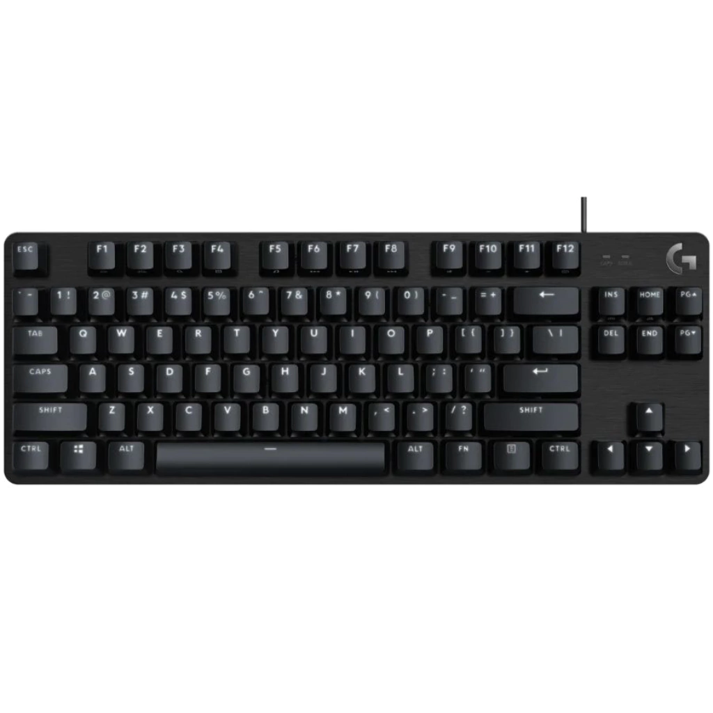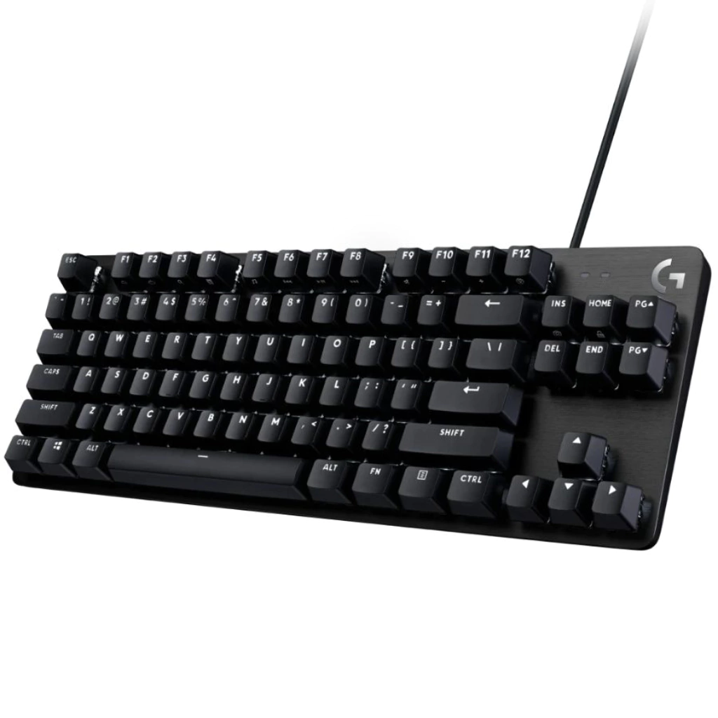El G413 TKL SE tiene interruptores mecánicos táctiles, seguidilla de 6 teclas con prevención de efecto fantasma, teclas de PBT y una carcasa de aleación de aluminio resistente, con un diseño sin sección numérica.